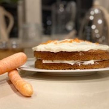 This is a simple cake but so yummy it is a carrot cake with a cream cheese icing and a topping of mini eggs or walnuts (if wanted) you can choose the size by saying the amount of people it is from 4 people to 12. it can be made dairy free or gluten free if there are other dietary requests you would like to make please email